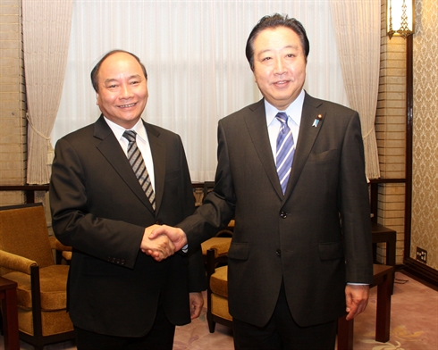 | Le vice-Premier ministre Nguyên Xuân Phuc (gauche) accueilli par le Premier ministre japonais Yoshihiko Noda, le 1er juillet à Tokyo. Photo : VNA/CVN |