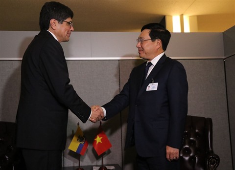 Lors de la réunion avec le ministre équatorien des Affaires étrangères, José Valencia, Pham Binh Minh a demandé à l’Équateur de reconnaître rapidement le statut d’économie de marché du Vietnam, ce afin de permettre ainsi aux entreprises des deux pays de sonder le marché et les opportunités d’affaires dans chaque pays respectif. Les deux parties ont convenu d'examiner la création de certains mécanismes de coopération bilatérale et de poursuivre leur collaboration étroite au sein des organisations et forum internationaux.