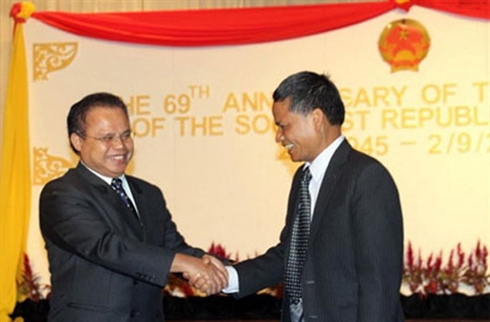 | L’ambassadeur vietnamien Nguyên Hông Thao en Malaisie (droite) lors d'une rencontre à l'occasion de la Fête nationale du Vietnam. |