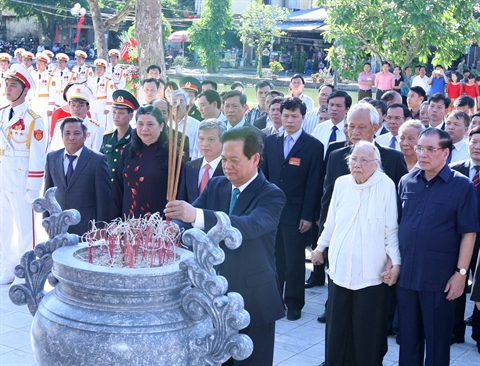 | Des dirigeants du Parti et de l’État offrent des bâtonnets d’encens à la mémoire du feu chef du PCV, |