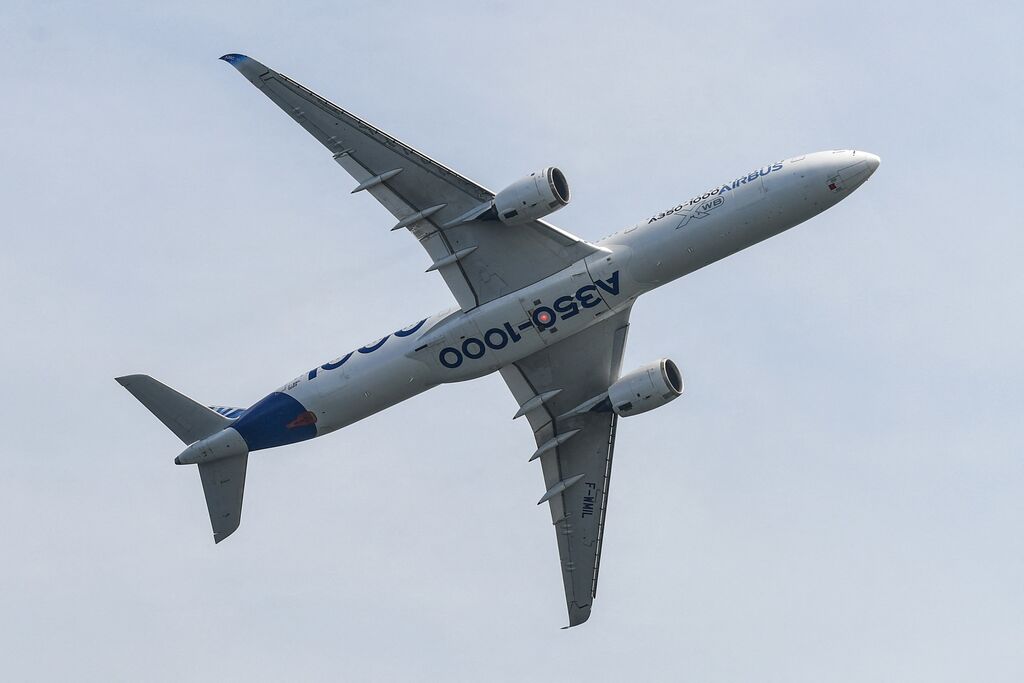 | Le modèle A350-1000 d'Aibus lors d'une exposition aéronautique |