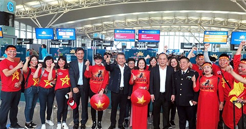 | Des supporteurs vietnamiens partent pour la Malaisie pour le match-aller de la finale, qui aura lieu à 19h45 ce soir 11 décembre au stade Bukit Jalil. |