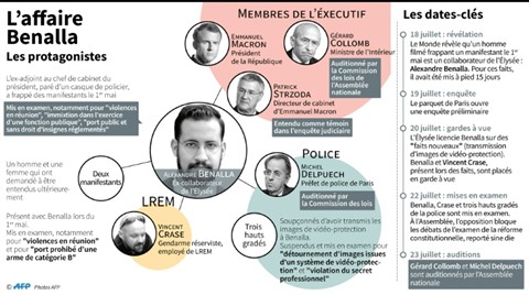 Dénonçant "la République des fusibles, la République de la haine, celle où l'on fait trinquer un fonctionnaire ici, un collaborateur là", M. Macron a aussi soutenu ses "équipes à l'Élysée" qui "ont fait ce qu'elles devaient faire". La simple mise à pied de 15 jours de M. Benalla était "proportionnée à ce moment-là et je l'assume", s'est-il défendu.