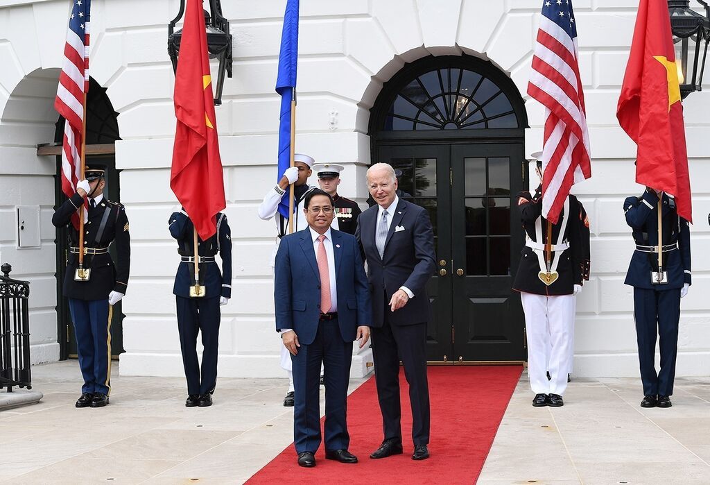 | Le Premier ministre vietnamien Pham Minh Chinh (gauche) et le président américain Joe Biden, en mai 2022 aux États-Unis. |