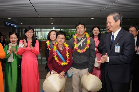 Ces touristes de différentes nationalités étaient à bord des trois vols VN599, VN581 et CX767. Lors de la cérémonie d’accueil, ils ont eu la chance de déguster du thé vietnamien et du café, ainsi que de recevoir des cadeaux très originaux.
