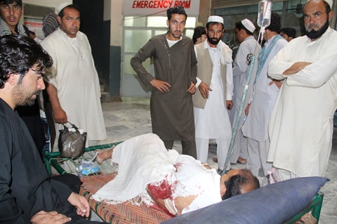 | Un afghan blessé dans un hôpital suite à une explosion sur un marché de téléphonie mobile dans la province de Khost, le 17 septembre en Afghanistan. |