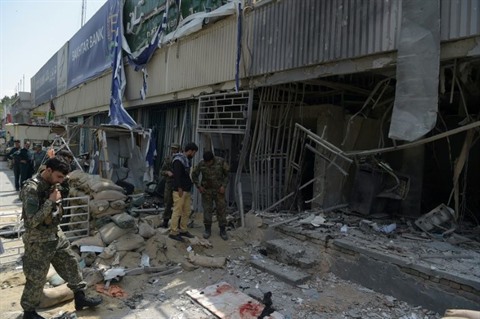 | Des équipes de sécurité inspectent le site de l'attentat-suicide qui s'est produit le 29 août dans une rue commerçante du centre de Kaboul. |