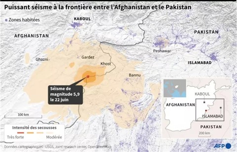 Le séisme, d'une magnitude de 5,9, est survenu à une profondeur de 10 km vers 01h30 mercredi 22 juin, tout près de la frontière avec le Pakistan, selon l'Institut sismologique américain (USGS).