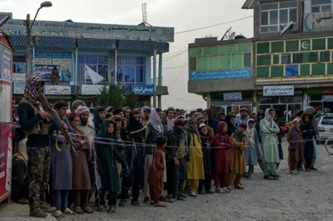 | Des habitants font la queue pour donner leur sang pour les blessés soignés à l'hôpital de Sharan, après un séisme dans la province de Paktika, le 22 juin dans le Sud-Est de l'Afghanistan. |