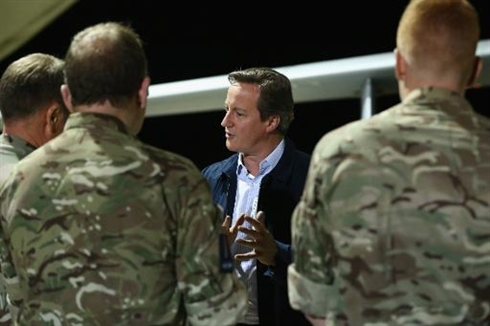 | Le Premier ministre David Cameron avec des soldats britanniques sur la base de Akrotiri à Chypre, le 2 octobre. |