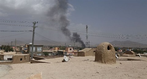 | De la fumée au-dessus de la ville de Ghazni attaquée par les talibans, le 10 août 2018 en Afghanistan. |