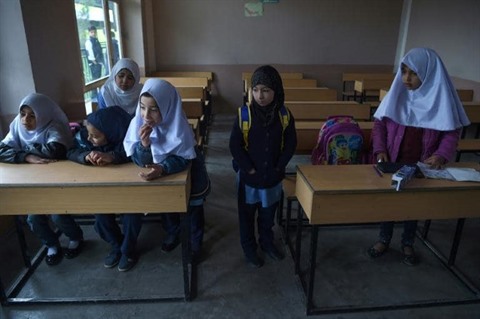 | Des écolières afghanes dans une école à Kaboul, le 24 mars. |