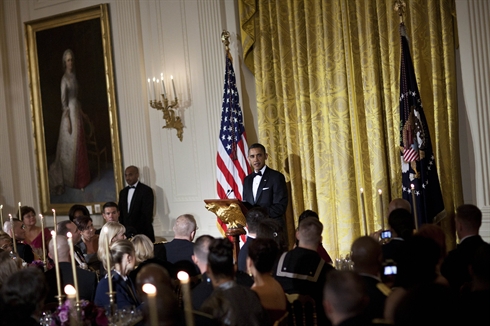 | Le président Barack Obama (centre, debout), le 29 février à Washington. |