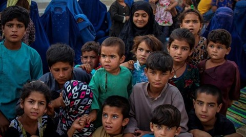 | Des enfants déplacés par les combats contre les talibans sont réfugiés à Kunduz, dans le Nord de l'Afghanistan, le 26 juin, avant que la ville ne tombe finalement aux mains des insurgés, début août. |