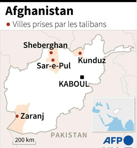 À quelques heures d'intervalle, les insurgés ont, après d'intenses combats, pris possession de Kunduz, qu'ils encerclaient depuis quelques semaines. Ils ont ensuite pris Sar-e-Pul, puis, en fin de journée, Taloqan, les capitales des provinces situées au sud et à l'est de Kunduz. Ils contrôlent maintenant cinq des 34 capitales provinciales afghanes.