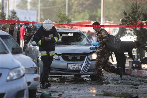 | Des forces de sécurité et de police sur les lieux d'un attentat suicide à Kaboul, le 22 août. |