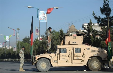 | Des forces de sécurité afghanes à Kaboul après un attentat suicide contre des chiites, le 16 juin. |