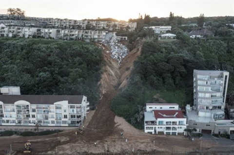 | Glissement de terrain sur la plage d'Umdloti, au nord de Durban, le 14 avril |