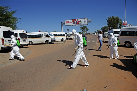 | Pulvérisation de désinfectant à Mamelodi East en Afrique du Sud. |