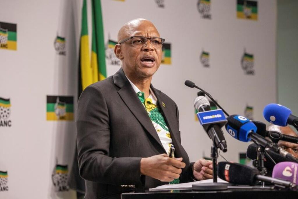 | Pule Mabe, porte-parole de l'ANC, parti au pouvoir, lors d'une conférence de presse, le 1er décembre à Johannesburg. |