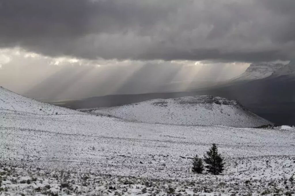 | Chutes de neige importantes sur les montagnes autour du col de Bo-Swaarmoed, près de Cérès, le 8 juillet en Afrique du Sud. |