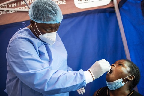 | Prélever l'échantillon pour le test du dépistage de COVID-19 à Johannesburg, en Afrique du Sud, le 22 octobre. |