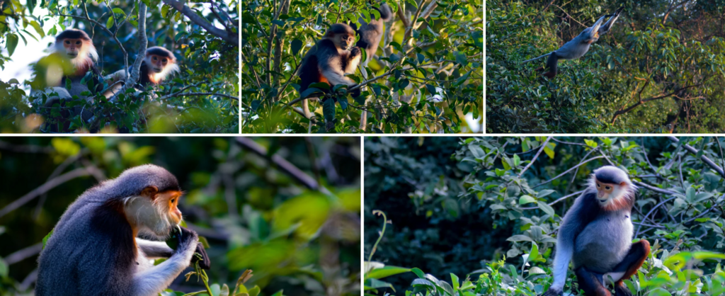 | Langurs douc à pattes rouges sur la péninsule de Son Trà, ville de Dà Nang (Centre). |