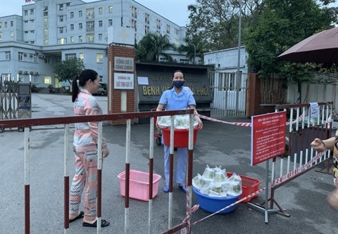 | Mme Huong (gauche) offre des centaines de petits déjeuners au personnel médical et aux personnes mises en quarantaine à l’Hôpital d’isolement spécial numéro deux de la province de Quang Ninh. |