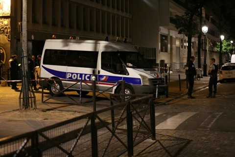 | Enquêteurs de la police française après l'agression à l'arme blanche qui a fait sept blessés, dont quatre grièvement, dimanche 9 septembre à Paris. |