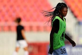 | Aminata Diallo, sous le maillot des Utah Royals FC à l'échauffement avant un match de Coupe de la Ligue américaine à Herriman, dans l'Utah. |
