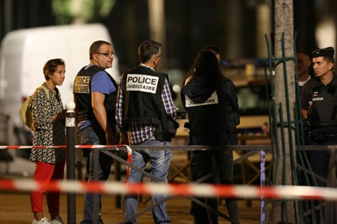 | Enquêteurs après l'agression à l'arme blanche qui a fait sept blessés, dont quatre grièvement, le 9 septembre à Paris. |