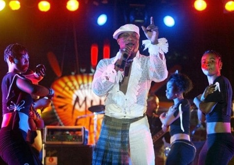 | Le chanteur congolais Koffi Olomidé, à Dakar le 30 avril 2005, est visé par un mandat d'arrêt, accusé d'avoir agressé sexuellement et séquestré quatre de ses danseuses en région parisienne entre 2002 et 2006. |