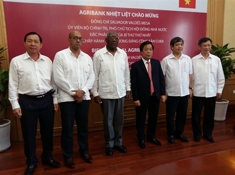 | Salvador Valdes Mesa (3e à gauche) pose avec les responsables de la Banque d’État du Vietnam et de l'Agribank. |
