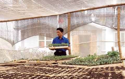 | Giàng A Day dans sa pépinière située au village de Rung Thông, province de Son La (Nord). |