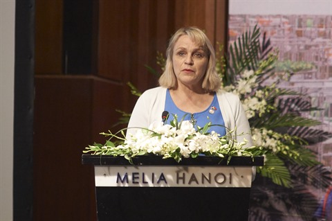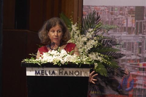 | Alison Rusinow, directrice de la SNV au Vietnam, lors du séminaire "Impulsion pour innover dans l’agro-industrie" le 9 avril à l’hôtel Melia Hanoi. Photo: Dang Duong/CVN |