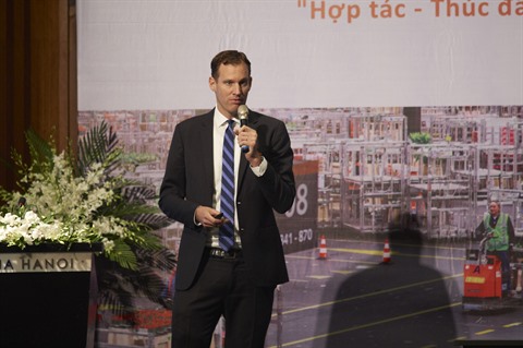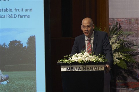 | René van Rensen, directeur du groupe néerlandais Fresh Studio, lors du séminaire "Impulsion pour innover dans l’agro-industrie" le 9 avril à l’hôtel Melia Hanoi. Photo: Dang Duong/CVN |