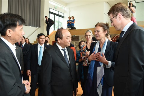 | Le Premier ministre vietnamien Nguyên Xuân Phuc (centre) avec les responsables de l'Université Wageningue, à Gueldre, aux Pays-Bas, le 10 juillet 2017. Photo: Gouvernement vietnamien/CVN |