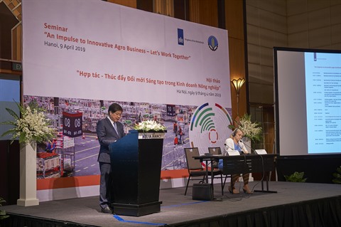 | Dr Nguyên Viêt Long de l'Université de l'agriculture du Vietnam, lors du séminaire "Impulsion pour innover dans l’agro-industrie" le 9 avril à l’hôtel Melia Hanoi. Photo: Dang Duong/CVN |