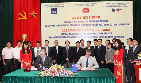 Le projet de connexion au sein du delta du Mékong reçoit ainsi 410 millions de dollars de la BAD et, par l'intermédiaire de cette dernière, une aide non remboursable de 134 millions de dollars de l'Australie, afin de perfectionner le réseau de communications terrestres du Delta du Mékong.