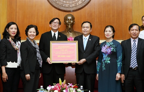 L'ambassadeur thaïlandais au Vietnam, Manopchai Vongphakdi, a remis la somme collectée par l'ambassade de Thaïlande et les entreprises thaïlandaises au Vietnam, au président du Comité central du FPV Trân Thanh Mân.