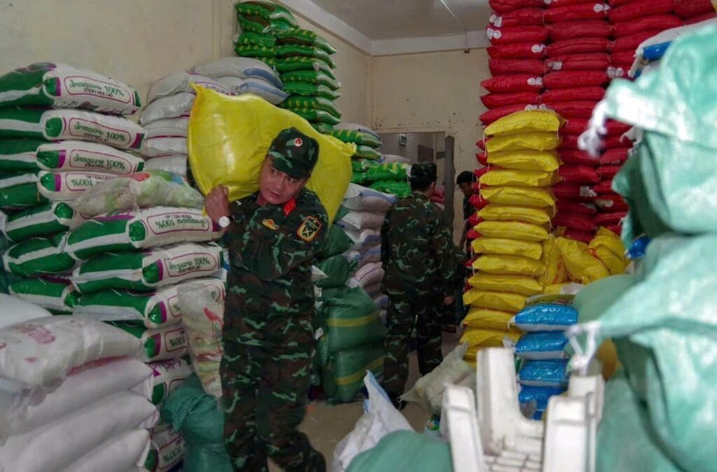 | Transport de riz pour le distribuer aux habitants après les pluies et les inondations. |
