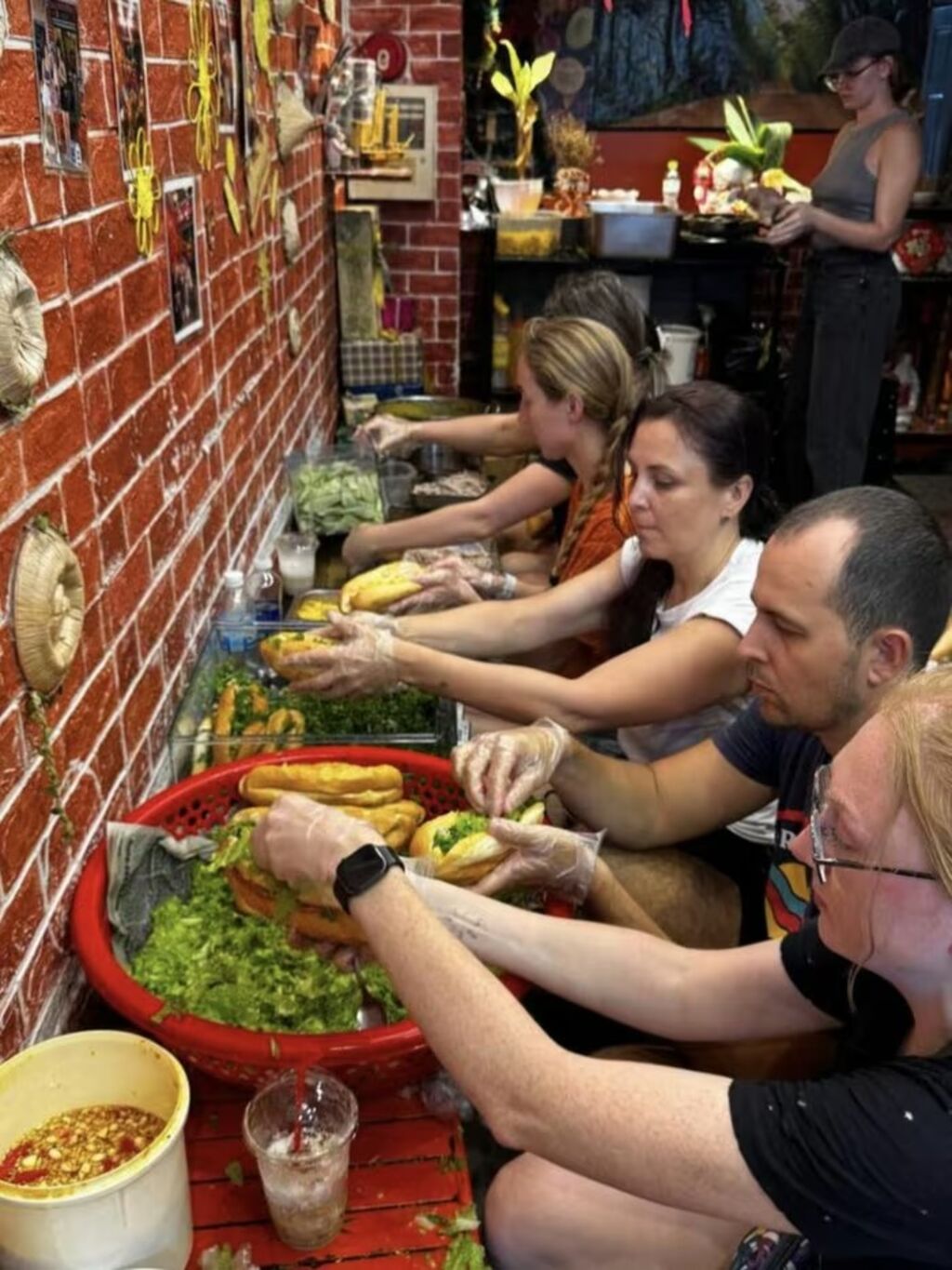 "Les Vietnamiens présents à la boulangerie nous ont aidés à préparer les ingrédients et à apprendre la manière locale de garnir le +bánh mi+ (sandwich vietnamien), ingrédient après ingrédient. Nous avons choisi le +bánh mi+ parce que c’est une spécialité vietnamienne, pratique, nourrissante et ne nécessitant aucune cuisson supplémentaire", a-t-elle expliqué.