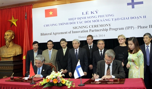 | Cérémonie de signature d'un accord sur la 2e phase (2014-2018) du programme "Partenariat pour l'innovation commune" entre le Vietnam et la Finlande, le 6 mars à Hanoi. |