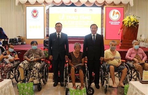 | Cérémonie de remise de fauteuils roulants à des personnes à mobilité réduite de la province de Long An, le 26 avril. |