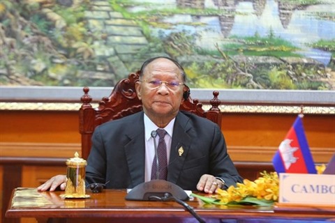 | Le président de l'Assemblée nationale du Cambodge, Samdech Akka Moha Ponhea Chakrei Heng Samrin. |