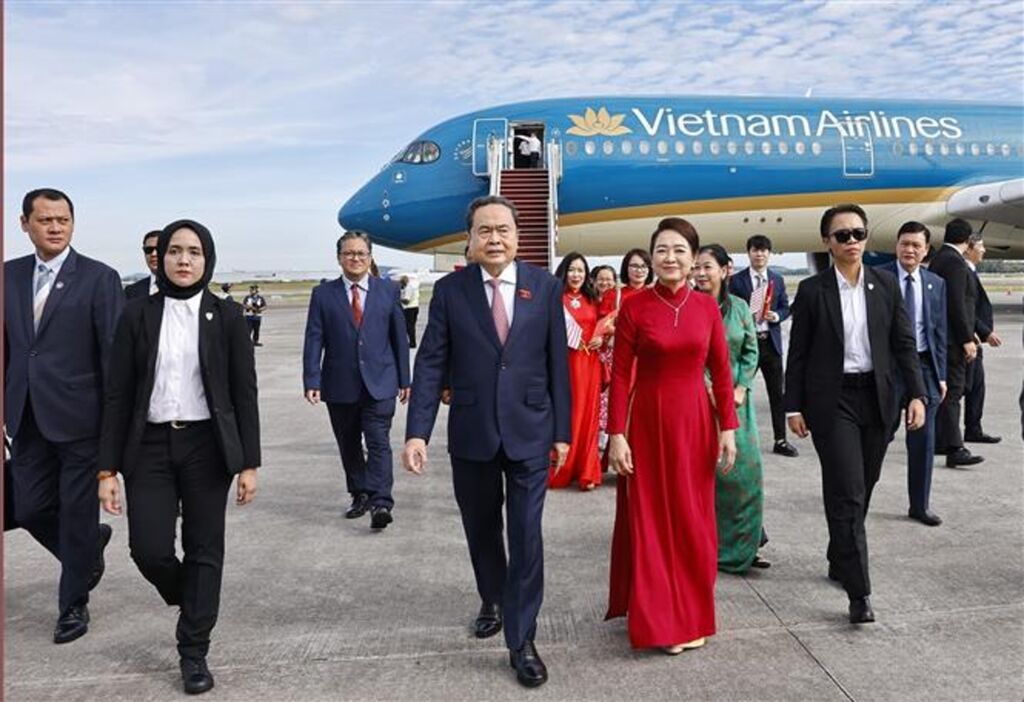 | Le président de l'Assemblée nationale, Trân Thanh Mân, et son épouse arrivent à l'aéroport international de Bunga Raya, à Kuala Lumpur, le 16 septembre. |
