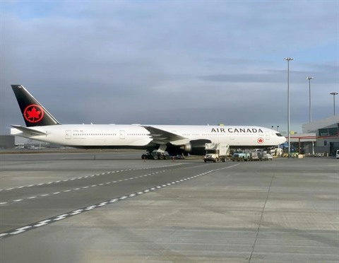 | Un Boeing 777-333 d'Air Canada à l'aéroport Pierre Elliott Trudeau de Montréal. |
