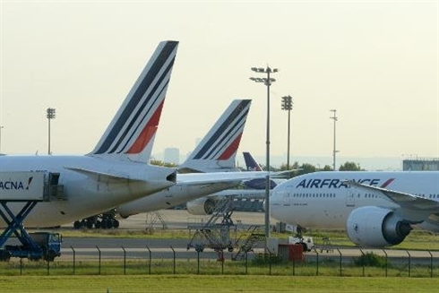 | Avions d'Air France cloués au sol sur le tarmac à l'aéroport Charles de Gaulle à Roissy, le 15 septembre. |