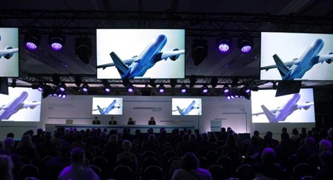 | À l'Assemblée générale des actionnaires du groupe Air France-KLM à Tremblay-en-France, près de l'aéroport de Roissy, le 24 mai. |