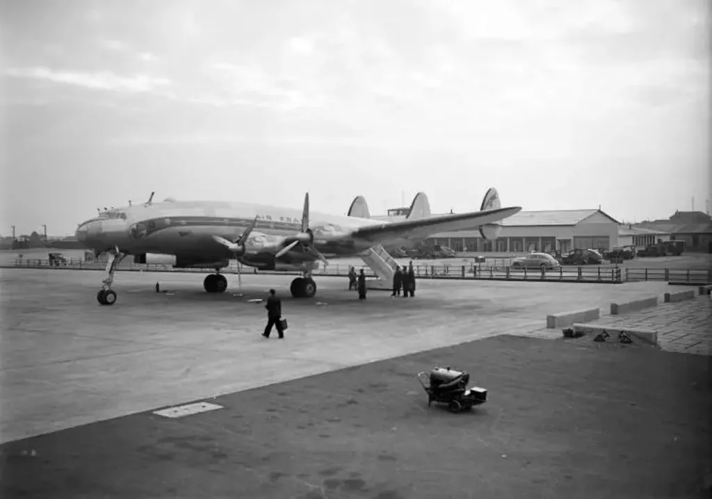 L’aéroport a accompagné l’essor du transport aérien, avec en 1946 un Douglas DC-4, un quadrimoteur à hélice aux couleurs de la compagnie tricolore pour assurer la ligne Paris-New York.